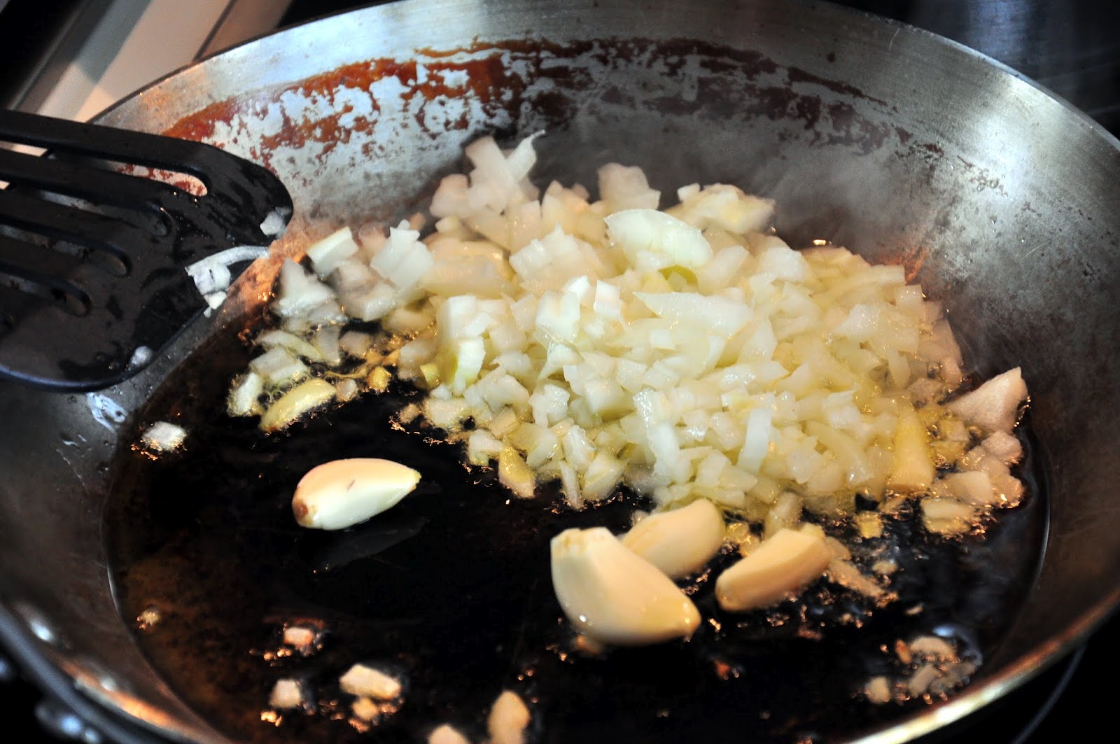 Faire revenir oignons et ail dans un peu d’huile d’olive