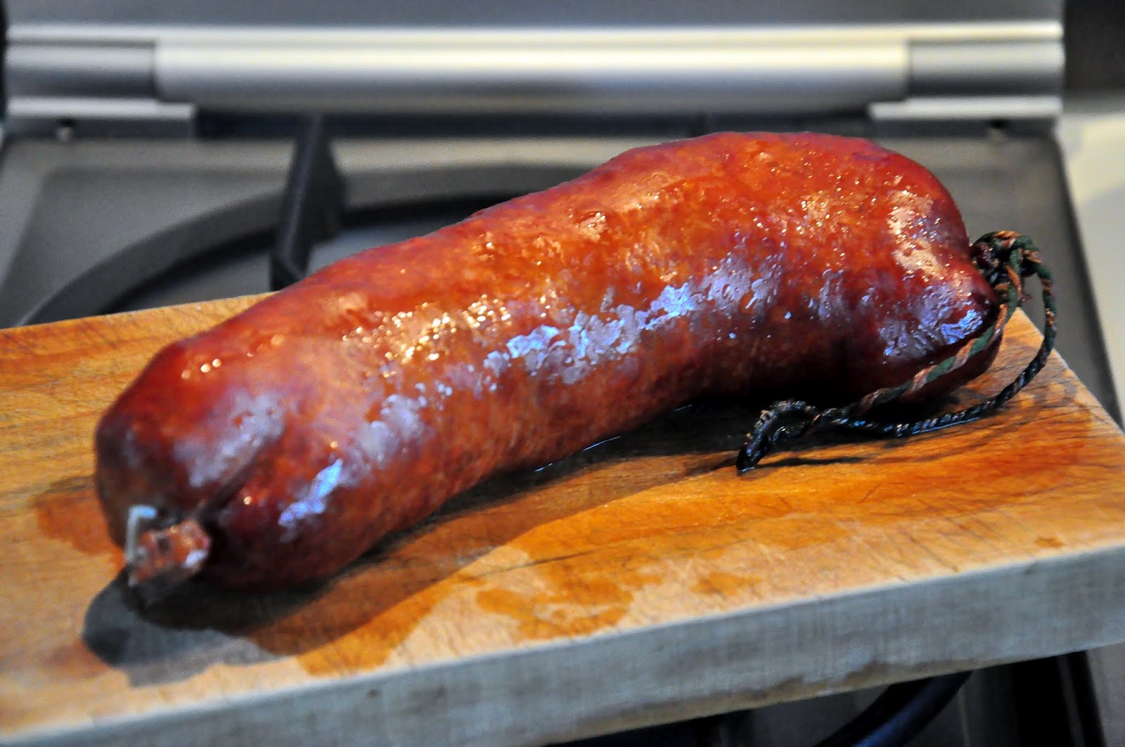 Cuire un saucisson, le peler et le découper en tranches assez fines
