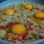Faites 4 trous dans le riz pour y déposer les oeufs crus